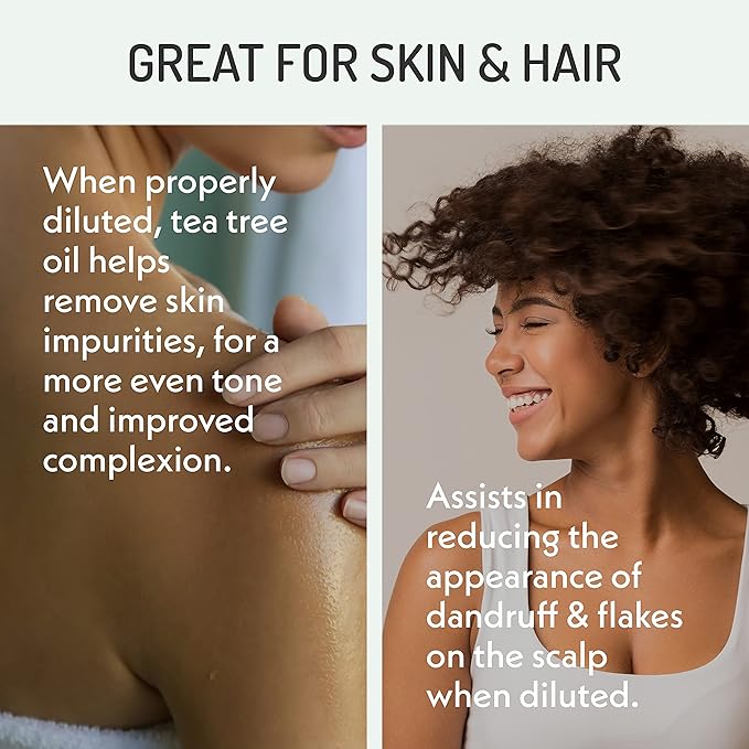 - 100% Pure Tea Tree Essential Oil (Melaleuca Alternifolia) - Steam-distilled from tea tree leaves, undiluted and free of fillers, fragrance, or parabens. Bottled in the USA in UV-protective amber glass for freshness.