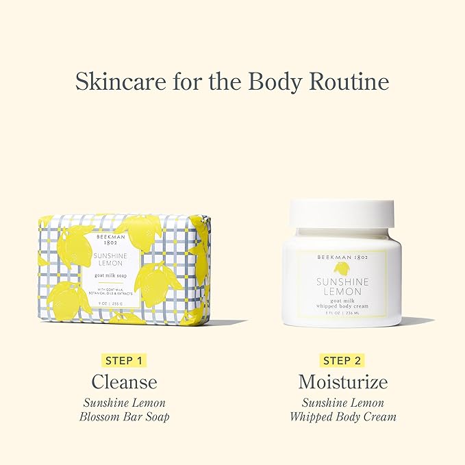 Beekman 1802 Goat Milk Body Soap Bar 3-Piece Set, Sunshine Lemon - Scented - 3.5 oz - Nourishes, Moisturizes & Hydrates - 100% Vegetable Soap with Lactic Acid - Good for Sensitive Skin - Cruelty Free