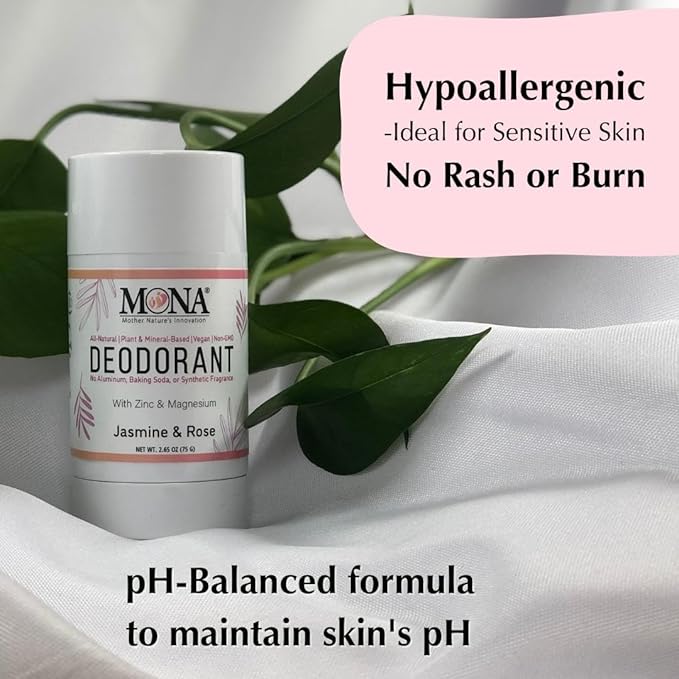 MONA BRANDS All Natural Magnesium Deodorant for Women & Men | Aluminum, Baking Soda, & Synthetic Fragrance Free for Sensitive Skin (Jasmine Rose) 2.65oz