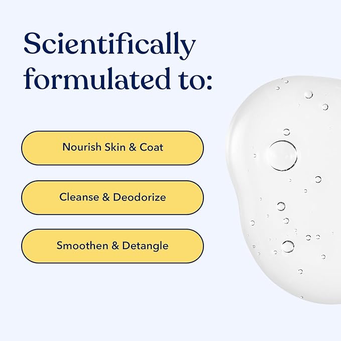 - Product Benefits : Cleans, Conditions, Deodorizes, Moisturizes, Detangles, Gently lathers, Quickly rinses clean, Leaves coat shiny & fluffy, Free of parabens, sulfates, phosphate, DEA, MEA Cleans, Conditions, Deodorizes, Moisturizes, Detangles, Gently lathers, Quickly rinses clean, Leaves coat shiny & fluffy, Free of parabens, sulfates, phosphate, DEA, MEA