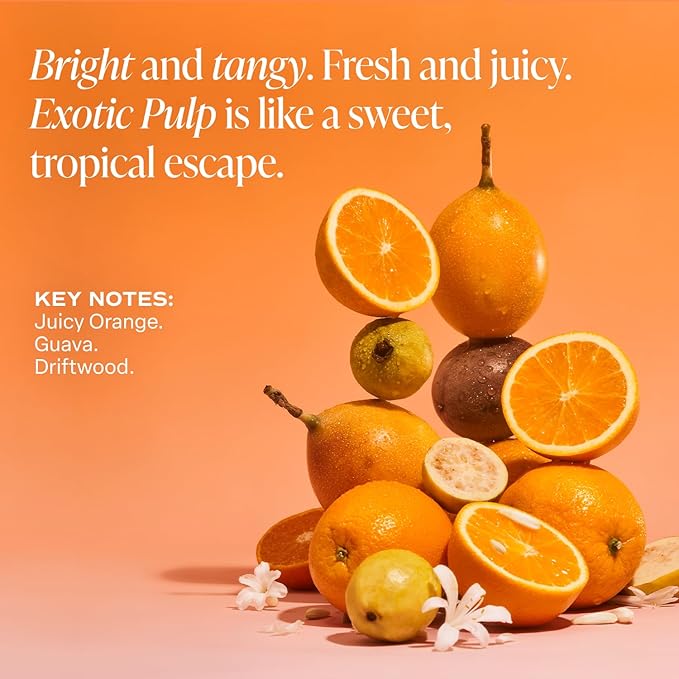 - EXOTIC PULP FRAGRANCE: Orange, Guava, and Passionfruit create a vibrant and tropical explosion of juicy citrus, sun-ripened fruit, and exotic sweetness, creating a scent that feels bright, playful, and full of energy. Exotic Pulp is bright and tangy, like an exciting tropical escape