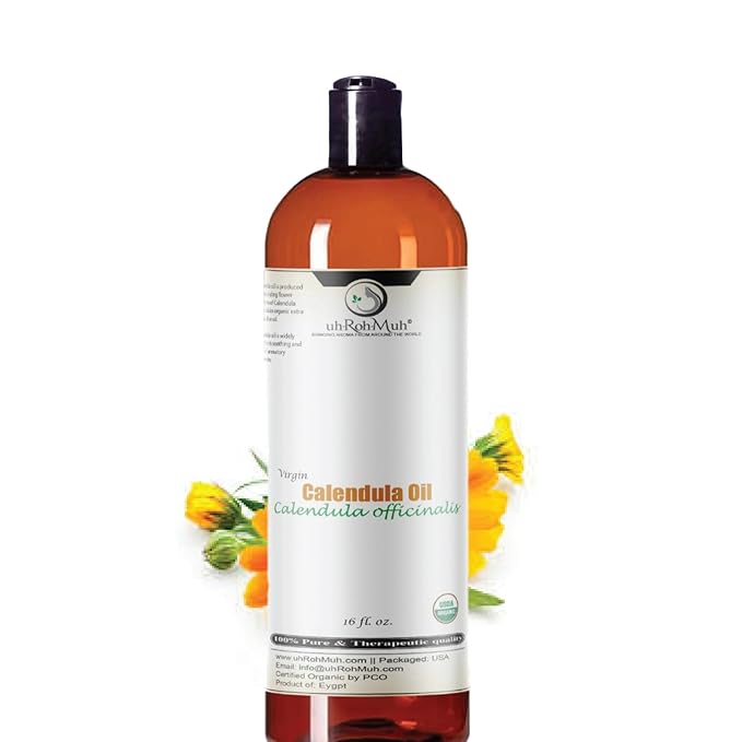 uh*Roh*Muh USDA Certified Organic Calendula Oil for Skin - 100% Pure Natural Calendula Essential Oil for Face - Organic Oils for Hair Health, Body Lotions, Soaps & Moisturizer - 16 Fl Oz