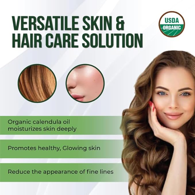 - Versatile Skin & Hair Care Solution – Rich in flavonoids, carotenoids, and essential fatty acids, our calendula oil organic for skin deeply moisturizes and supports a soft, healthy-looking glow. Suitable for those looking to enhance the appearance of dry or dull skin.