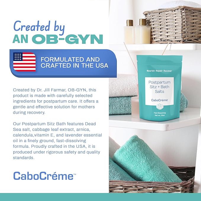 CaboCréme Postpartum Sitz + Bath Salts – 24oz – Postpartum Bath Soak for Perineal Care, Healing Tears, Swelling & Hemorrhoids – Dead Sea Salt with Magnesium, Arnica, Calendula + Cabbage Extract