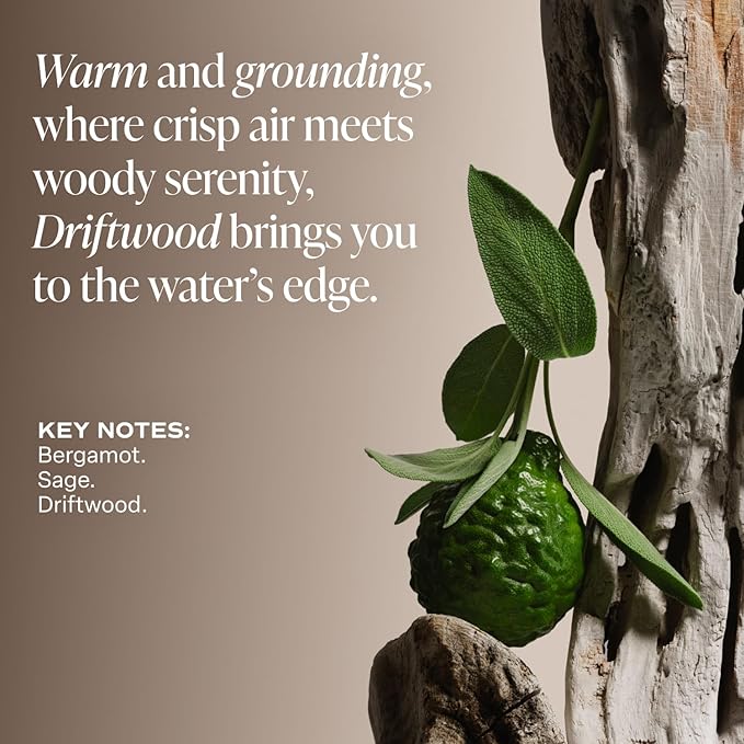 - DRIFTWOOD FRAGRANCE: Key Notes: Bergamot. Sage. Driftwood. Warm and grounding, where crisp air meets woody serenity, Driftwood brings you to the water’s edge.