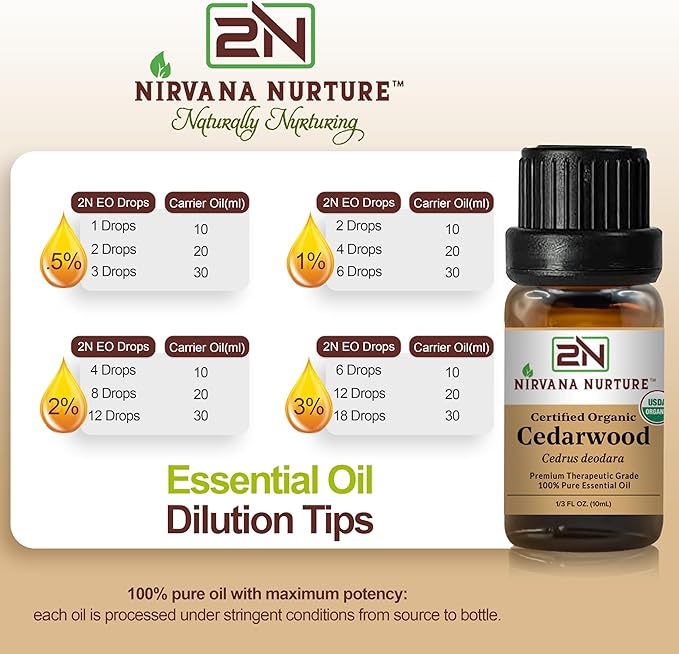 - SKIN CARE & HAIR CARE: Nirvana Nurture Cedarwood Oil helps balance sebum production, soothes irritation & clear skin. It also nourishes the scalp, strengthens hair follicles, supports thicker, stronger hair. When diluting a few drops in a carrier oil before applying it.